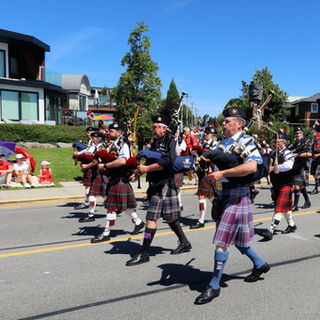 Our massed band consisted of SPPB, 443 Squadron RCAF Pipes and Drums, Castle Cary Pipes and Drums, 78th Fraser Highlanders Pipes and Drums, Canadian Scottish Regimental Association Pipes and Drums and other colleagues. Led by members of the Victoria Highland Dancing Association, the 2025 massed pipes, drums and dancers was the largest in Sidney Canada Day’s history !